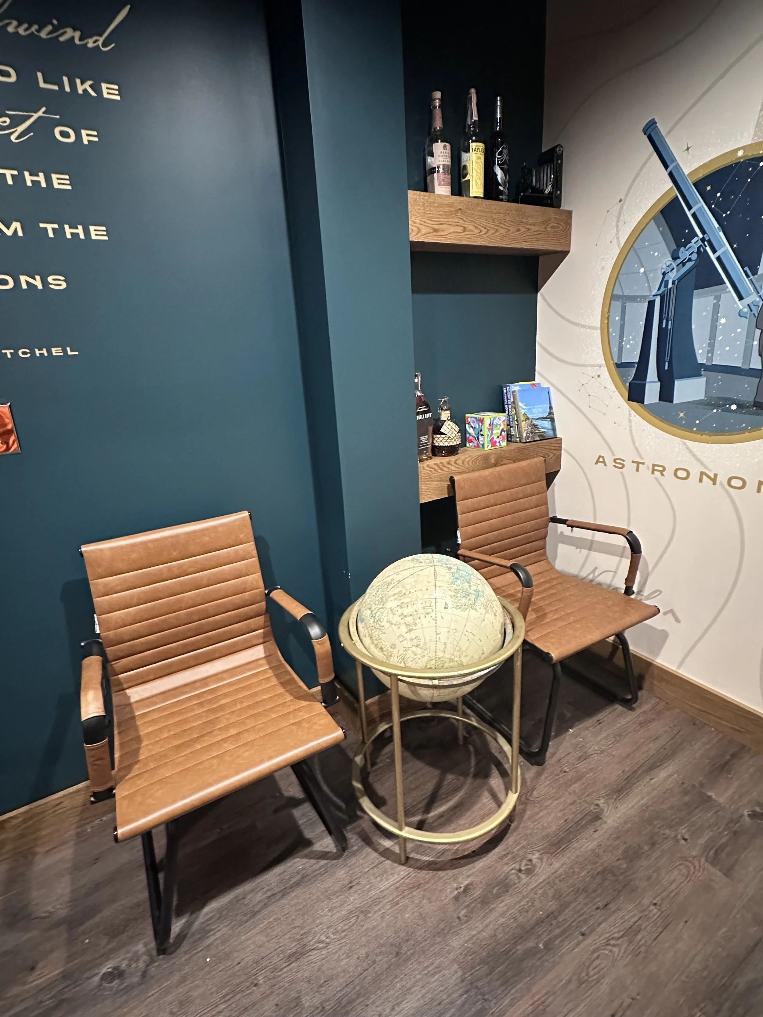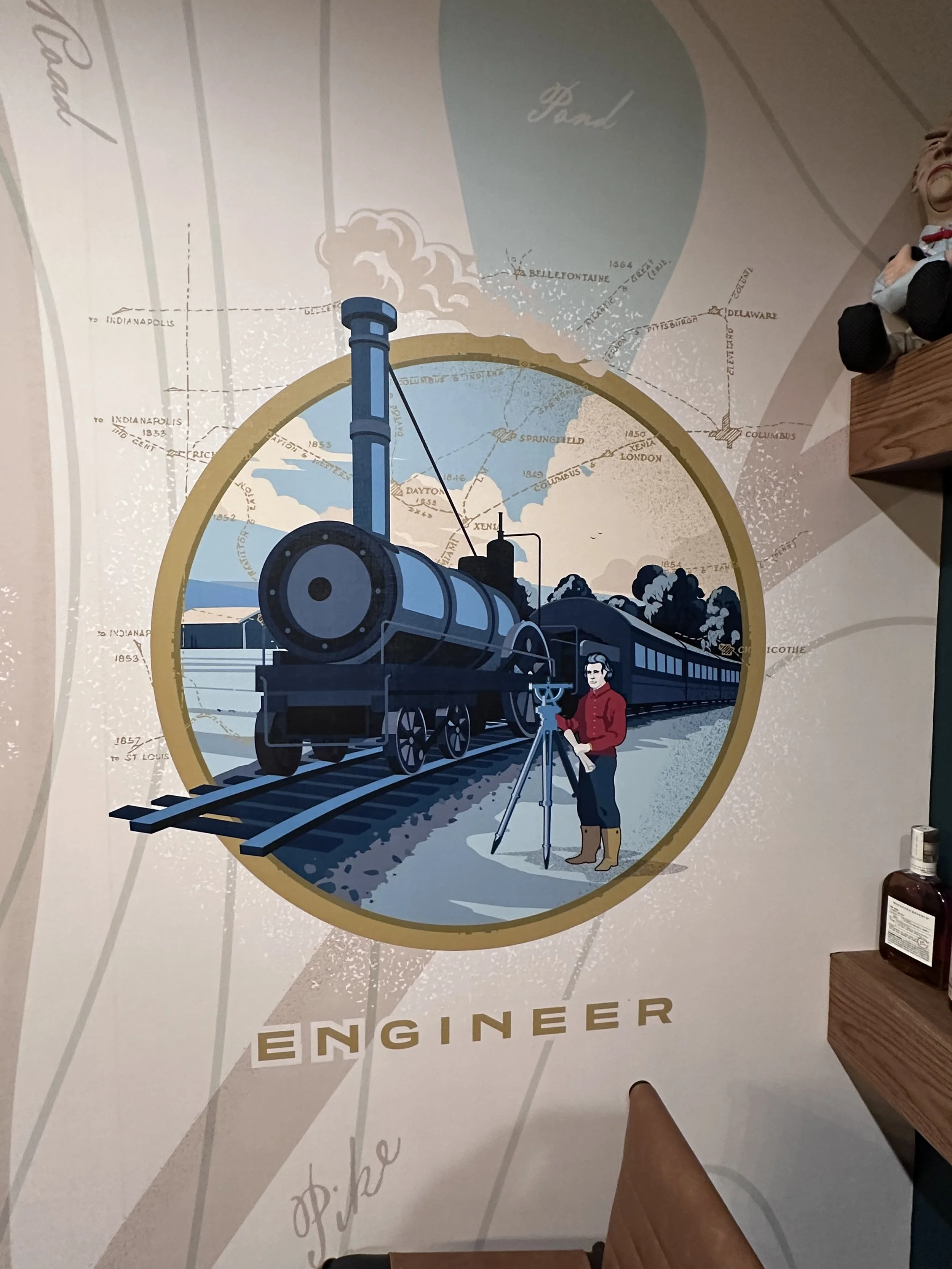 This room is special. This room highlights the namesake of our city and the roles he held that helped shape our region. The mural was done by a Fort Mitchell resident and dear friend who captured Ormsby and the history of this era. He left several things to discover and learn. This is perfect for a team / board meeting, to watch a game with friends or to entertain a client.